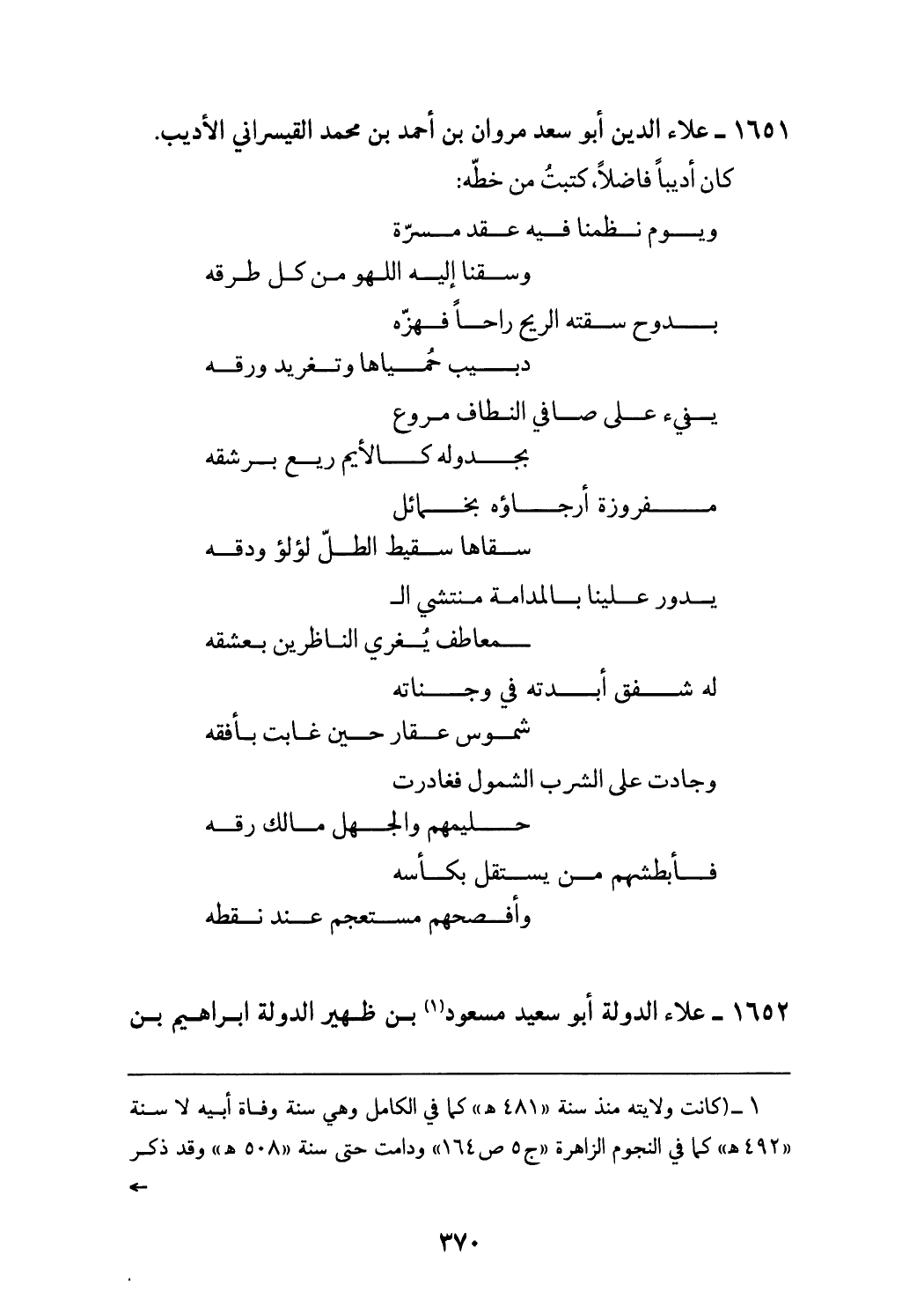 1651 - علاء الدين أبو سعد مروان بن أحمد بن محمد القيسراني الأديب.