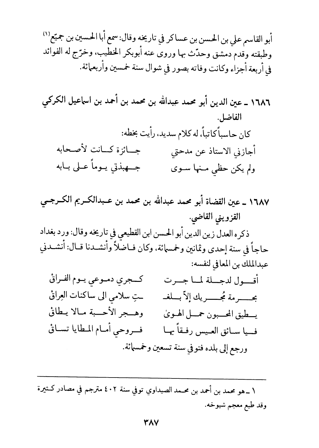 1687 - عين القضاة أبو محمد عبد الله بن محمد بن عبد الكريم الكرجي