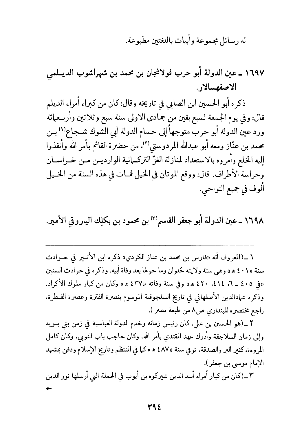 1698 - عين الدولة أبو جعفر القاسم (¬3) بن محمود بن بكلك الياروقي الأمير.