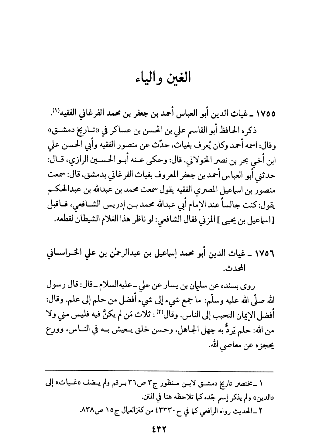 (¬1) مختصر تاريخ دمشق لابن منظور ج 3 ص 36 برقم ولم يضف «غياث» إلى «الدين» ولم يذكر اسم جدّه كما تلاحظه هنا في المتن.