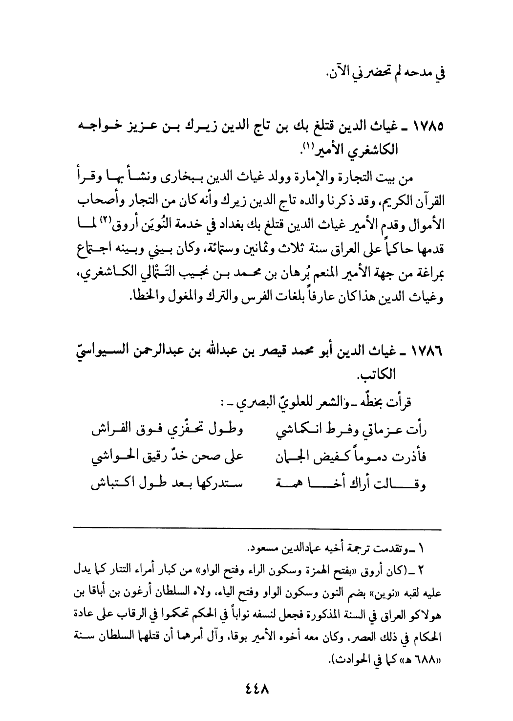 1785 - غياث الدين قتلغ بك بن تاج الدين زيرك بن عزيز خواجه