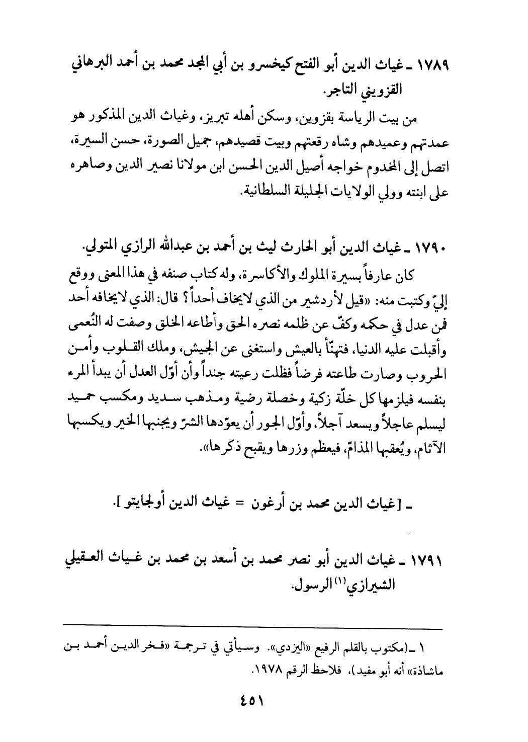 (¬1) (مكتوب بالقلم الرفيع «اليزدي».وسيأتي في ترجمة «فخر الدين أحمد بن ماشاذة» أنه أبو مفيد)، فلاحظ الرقم 1978.