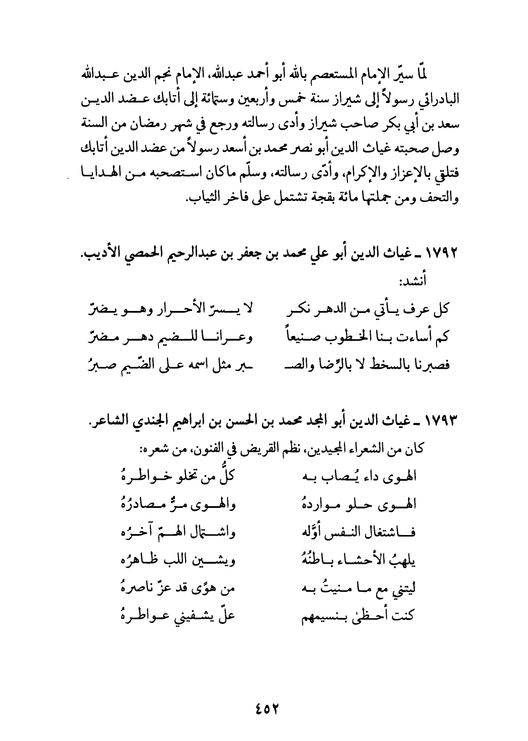1793 - غياث الدين أبو المجد محمد بن الحسن بن ابراهيم الجندي الشاعر.