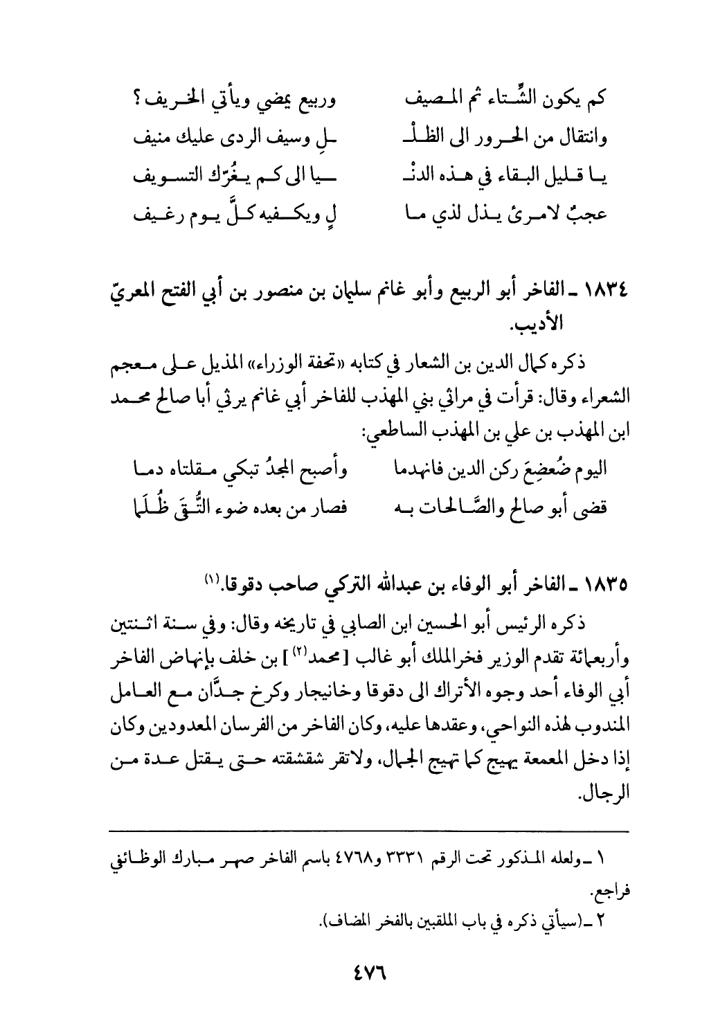 1834 - الفاخر أبو الربيع وأبو غانم سليمان بن منصور بن أبي الفتح المعريّ