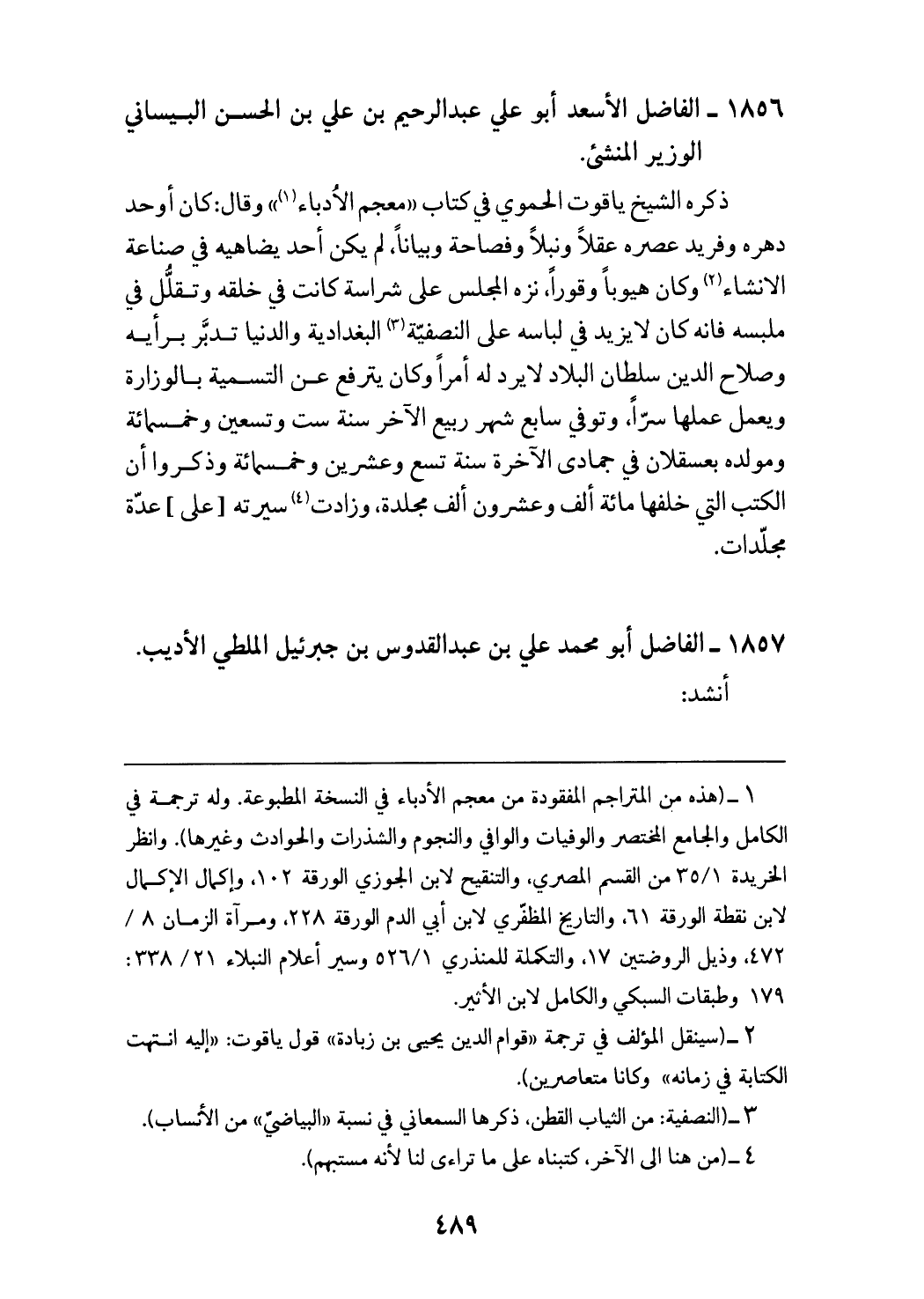(¬2) (سينقل المؤلف في ترجمة «قوام الدين يحيى بن زبادة» قول ياقوت: «إليه انتهت الكتابة في زمانه» وكانا متعاصرين).