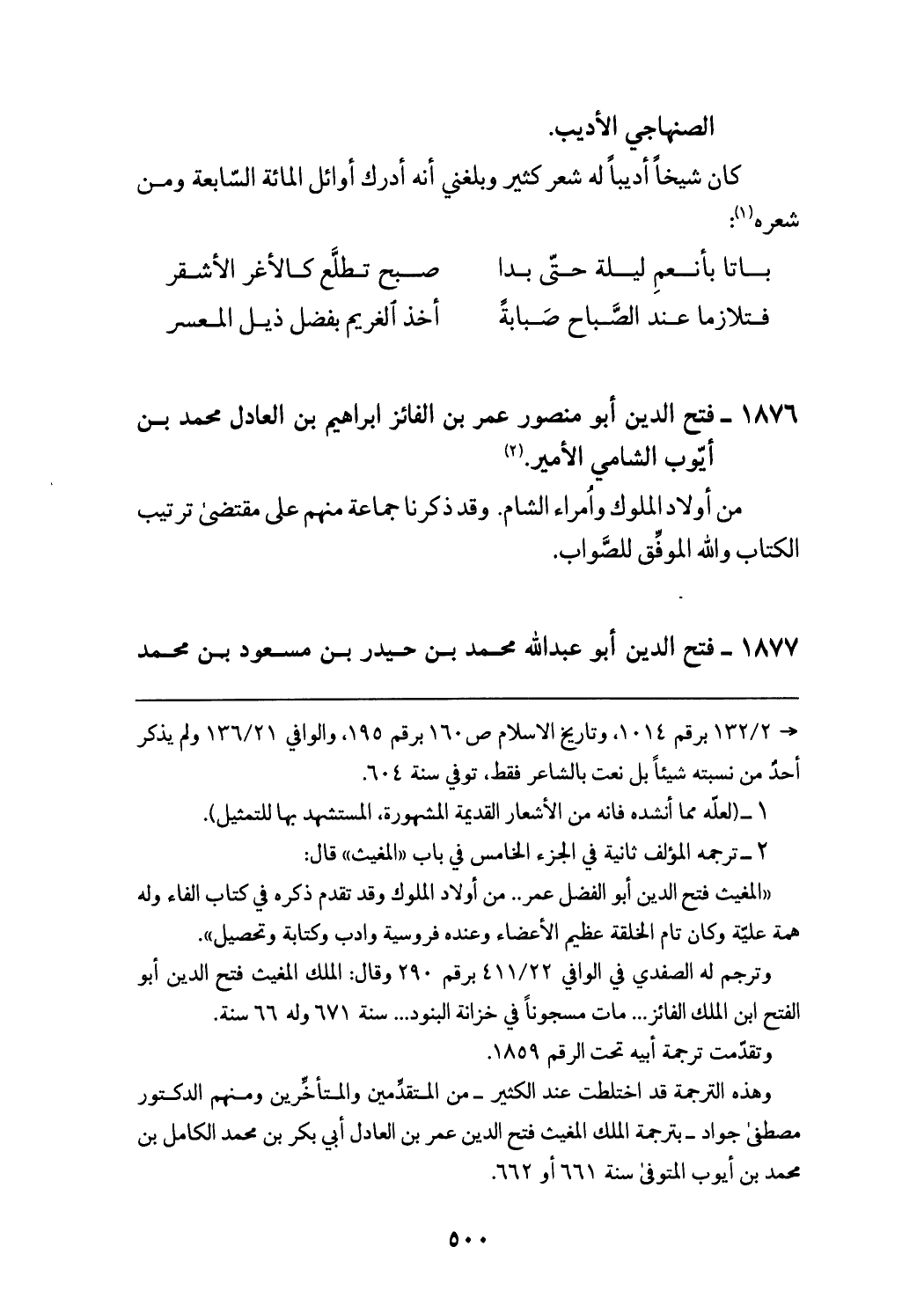 من أولاد الملوك وامراء الشام. وقد ذكرنا جماعة منهم على مقتضى ترتيب الكتاب والله الموفّق للصّواب.