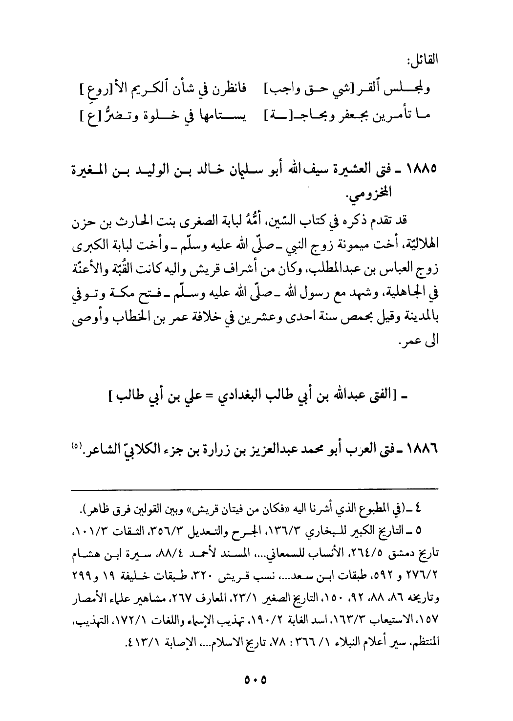 1886 - فتى العرب أبو محمد عبد العزيز بن زرارة بن جزء الكلابيّ الشاعر. (¬5)