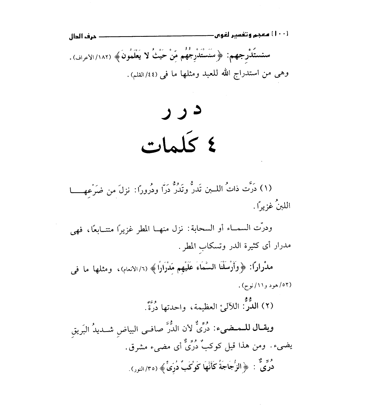 1 - درت ذات اللبن تدر وتدر درا ودرورا: نزل من ضرعها اللبن غزيرا.