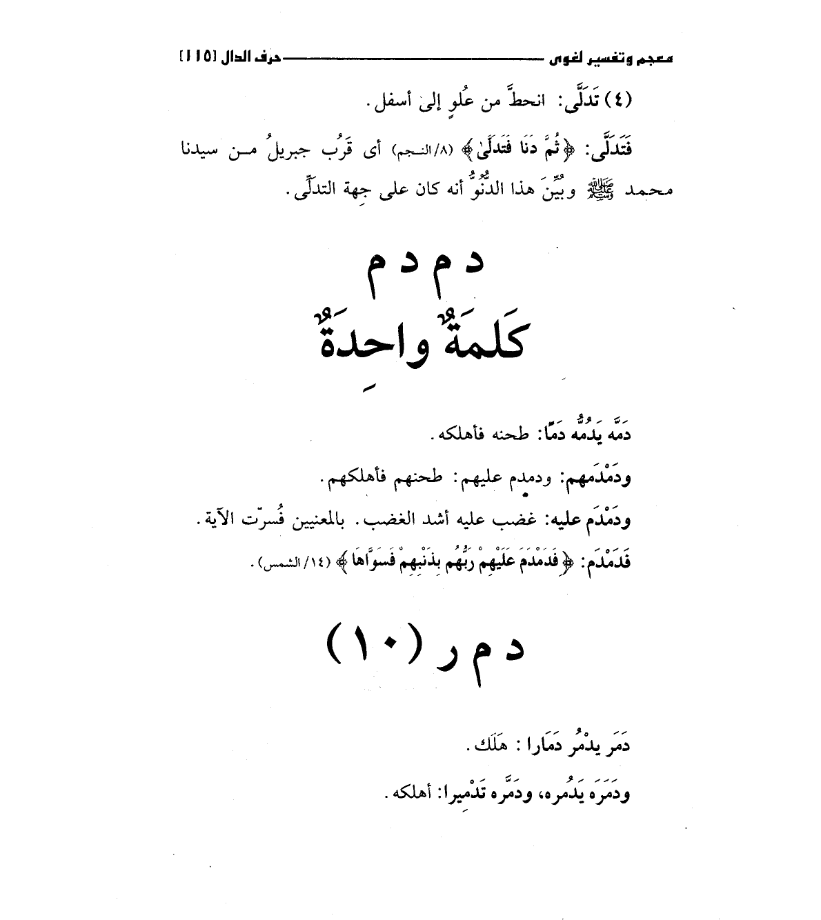 فدمدم: (فَدَمْدَمَ عَلَيْهِمْ رَبُّهُمْ بِذَنْبِهِمْ فَسَوَّاهَا) " 14/الشمس ".