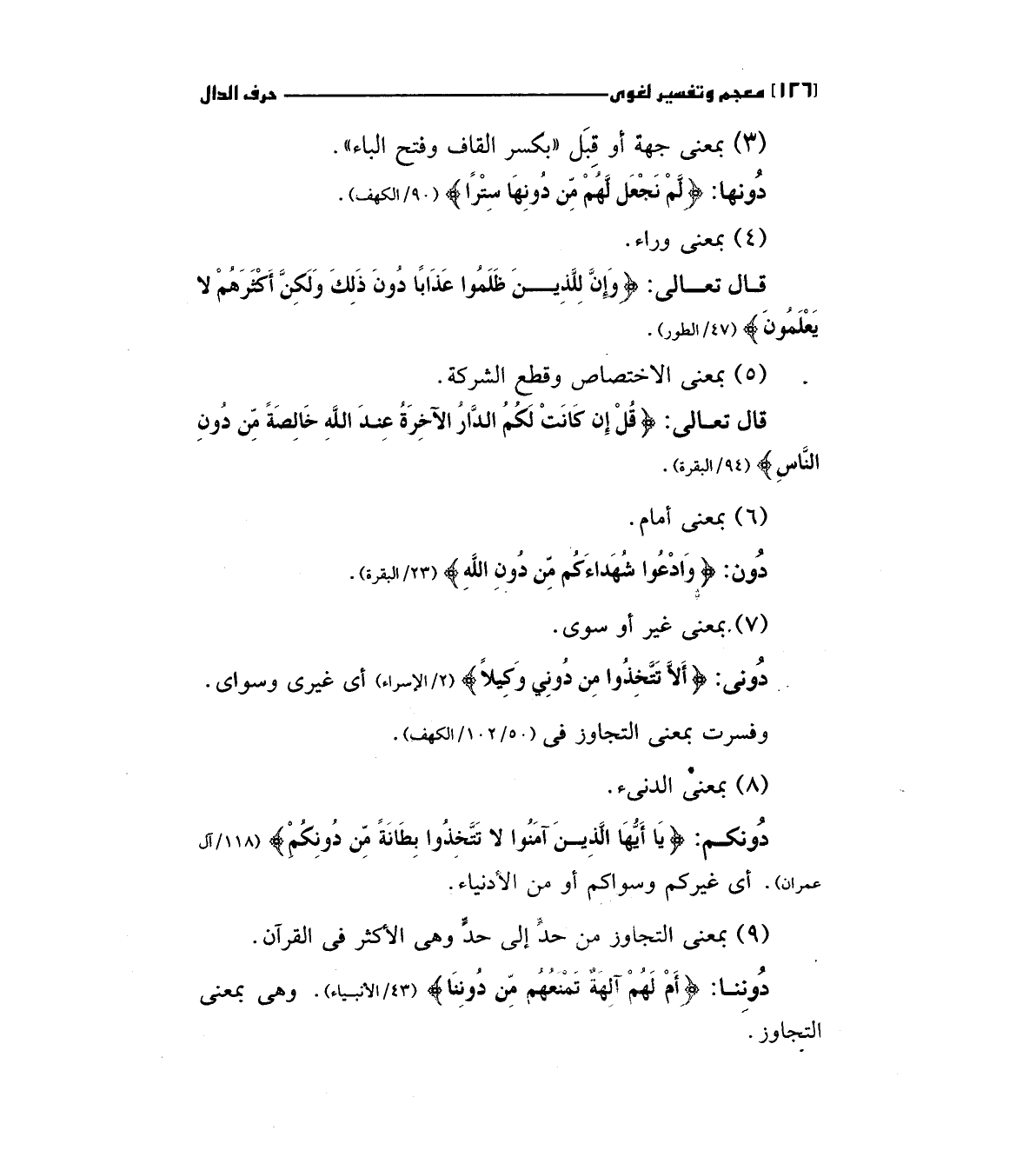 دوننا: (أَمْ لَهُمْ آلِهَةٌ تَمْنَعُهُمْ مِنْ دُونِنَا) "43/الأنبياء " وهي بمعني التجاوز.