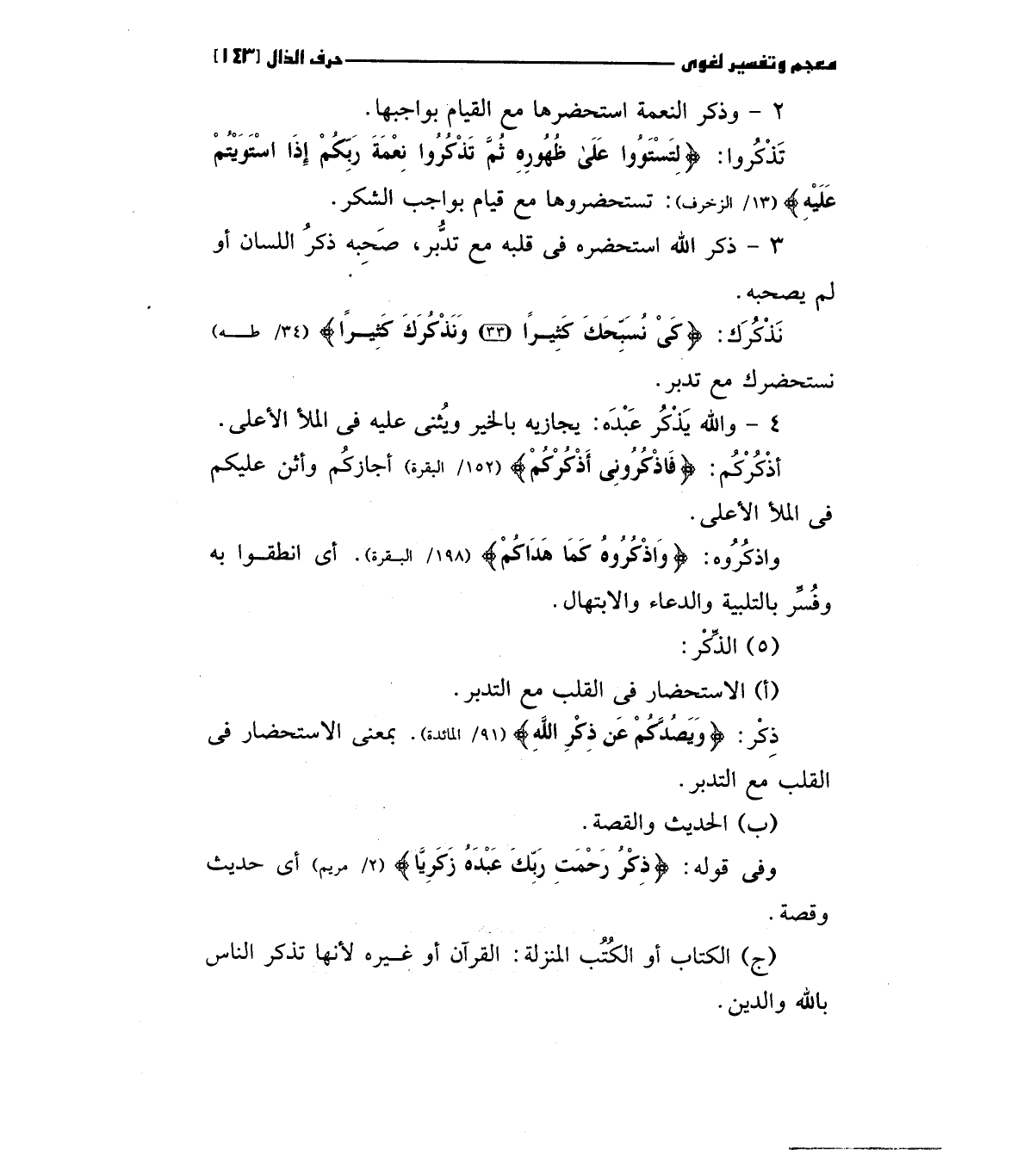 ذكر: (وَيَصُدَّكُمْ عَنْ ذِكْرِ اللَّهِ) " 91/المائدة" بمعني الاستحضار في القلب مع التدبر.