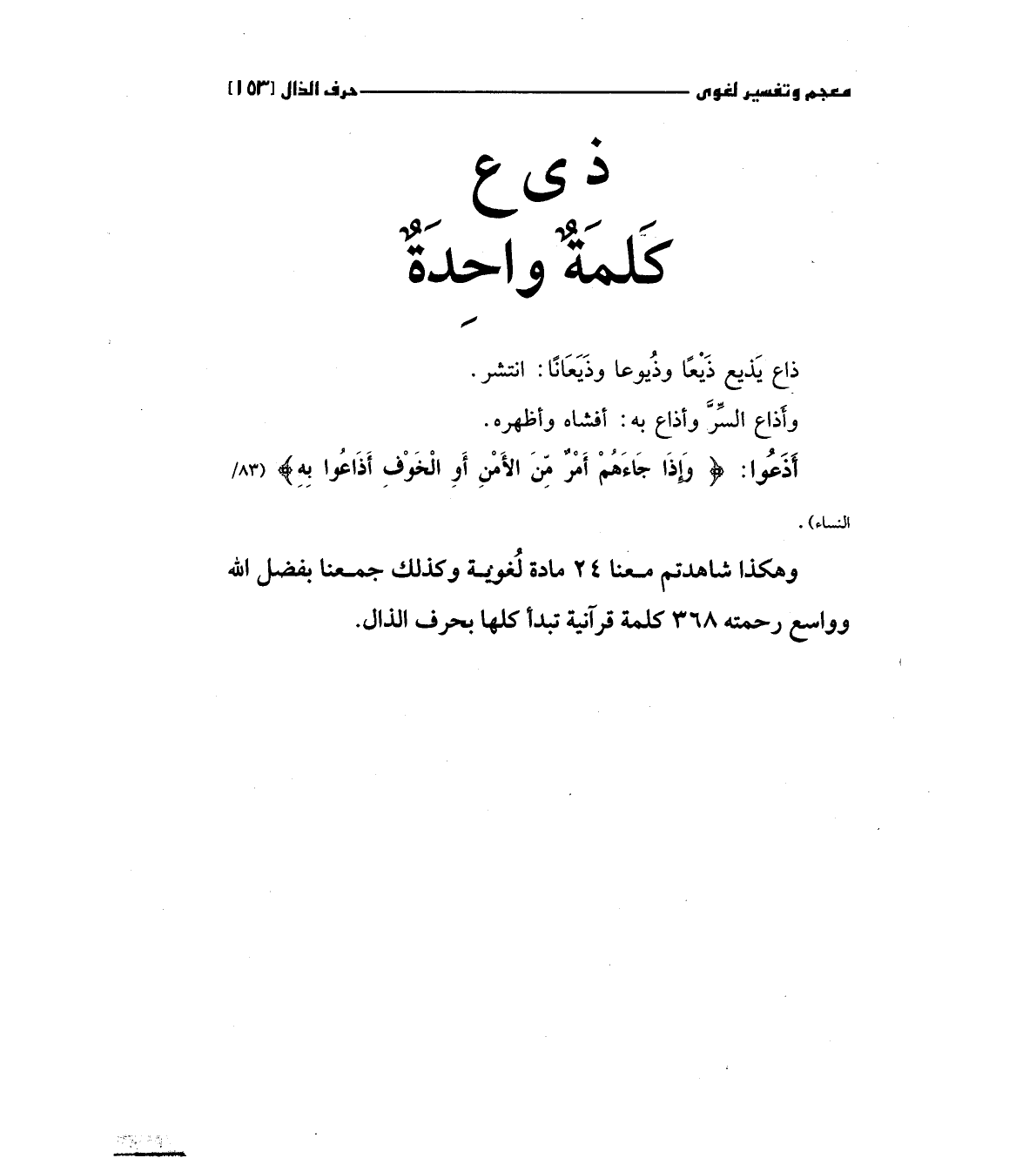 وهكذا شاهدتم معنا 24 مادة لغوية وكذلك جمعنا بفضل الله وواسع رحمته 368 كلمة قرآنية تبدأ كلها بحرف الذال.