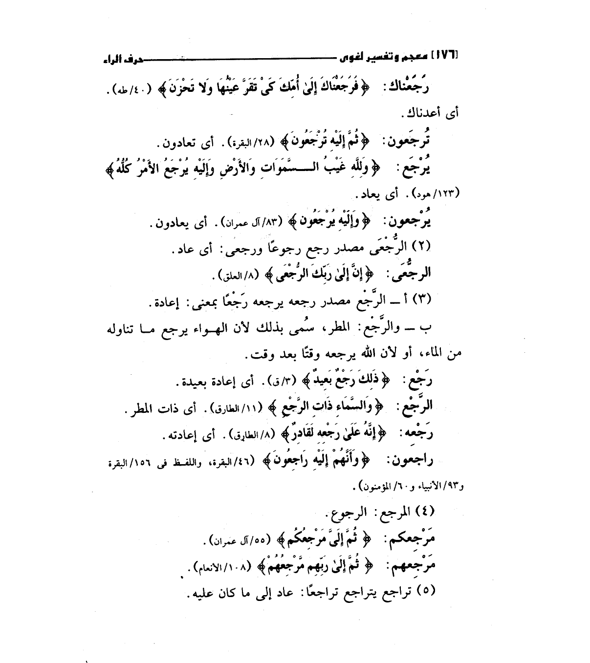 راجعون: (وَأَنَّهُمْ إِلَيْهِ رَاجِعُونَ) " 46/البقرة، واللفظ في 156/البقرة و93/الأنبياء و60 المؤمنون ".
