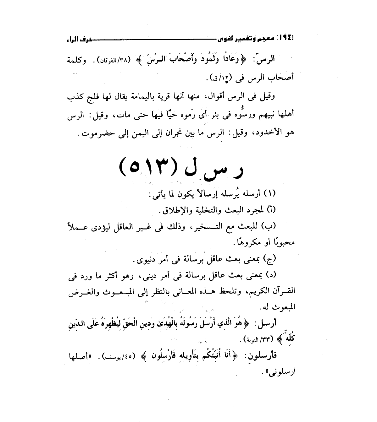 الرس: (وَعَاداً وَثَمُودَ وَأَصْحَابَ الرَّسِّ) "38/الفرقان" وكلمة أصحاب الرس في "12/ق".
