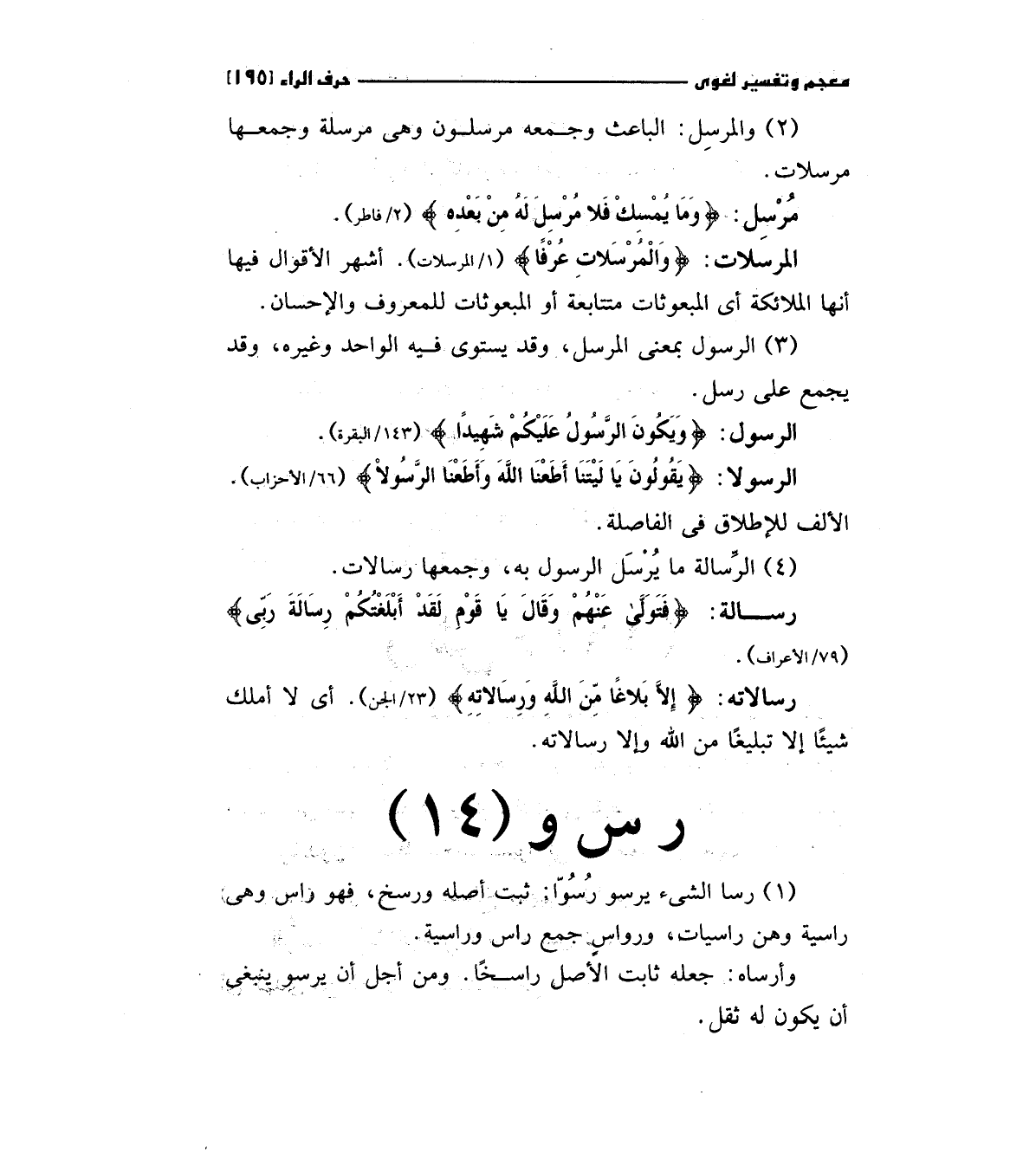 1 - رسا الشئ يرسو رسوا: ثبت أصله ورسخ، فهو رأس وهي راسية وهن راسيات، وررواس جمع راس وراسية.