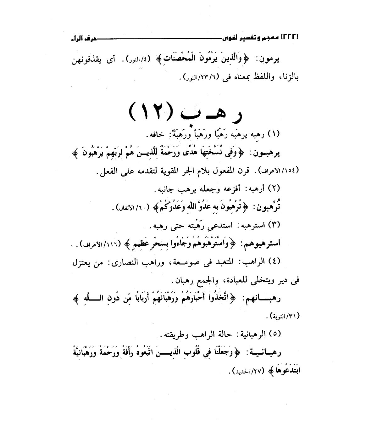 4 - الرهب: المتعبد في صومعة، وراهب النصاري: من يعتزل