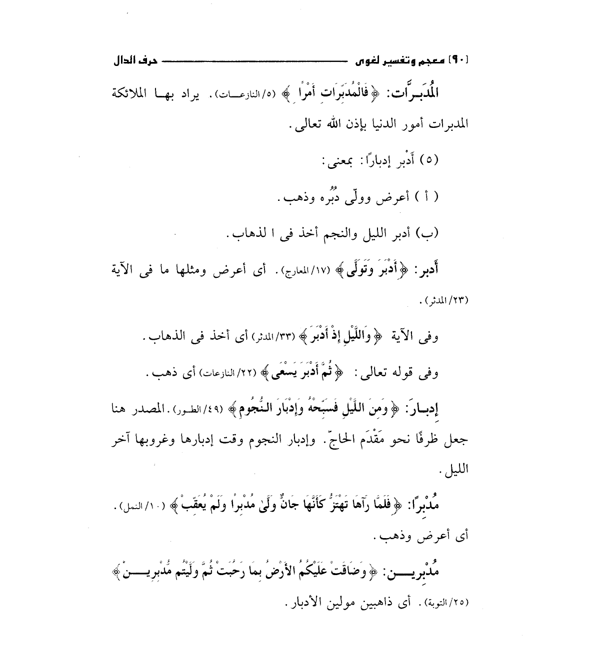 أدبر: (أَدْبَرَ وَتَوَلَّى) (17/ المعارج) أى أعرض ومثلها ما فى الآية (23/ المدثر)