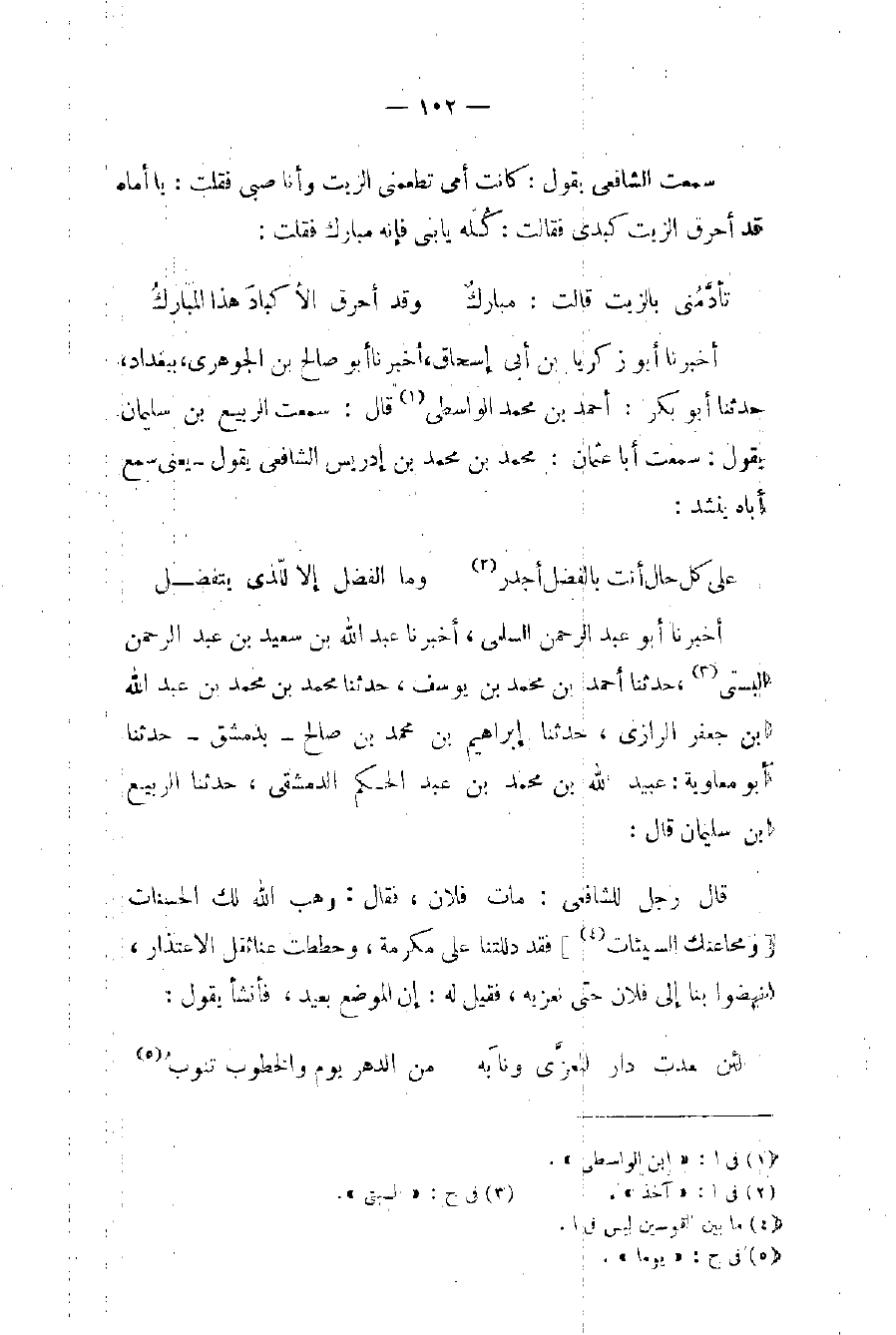 (*) هذا نص ح. وفي ا: «الشافعي يقول ينشد يعني سمع أباه ينشد». [فهرس التصويبات ٢/ ٤٧٠]