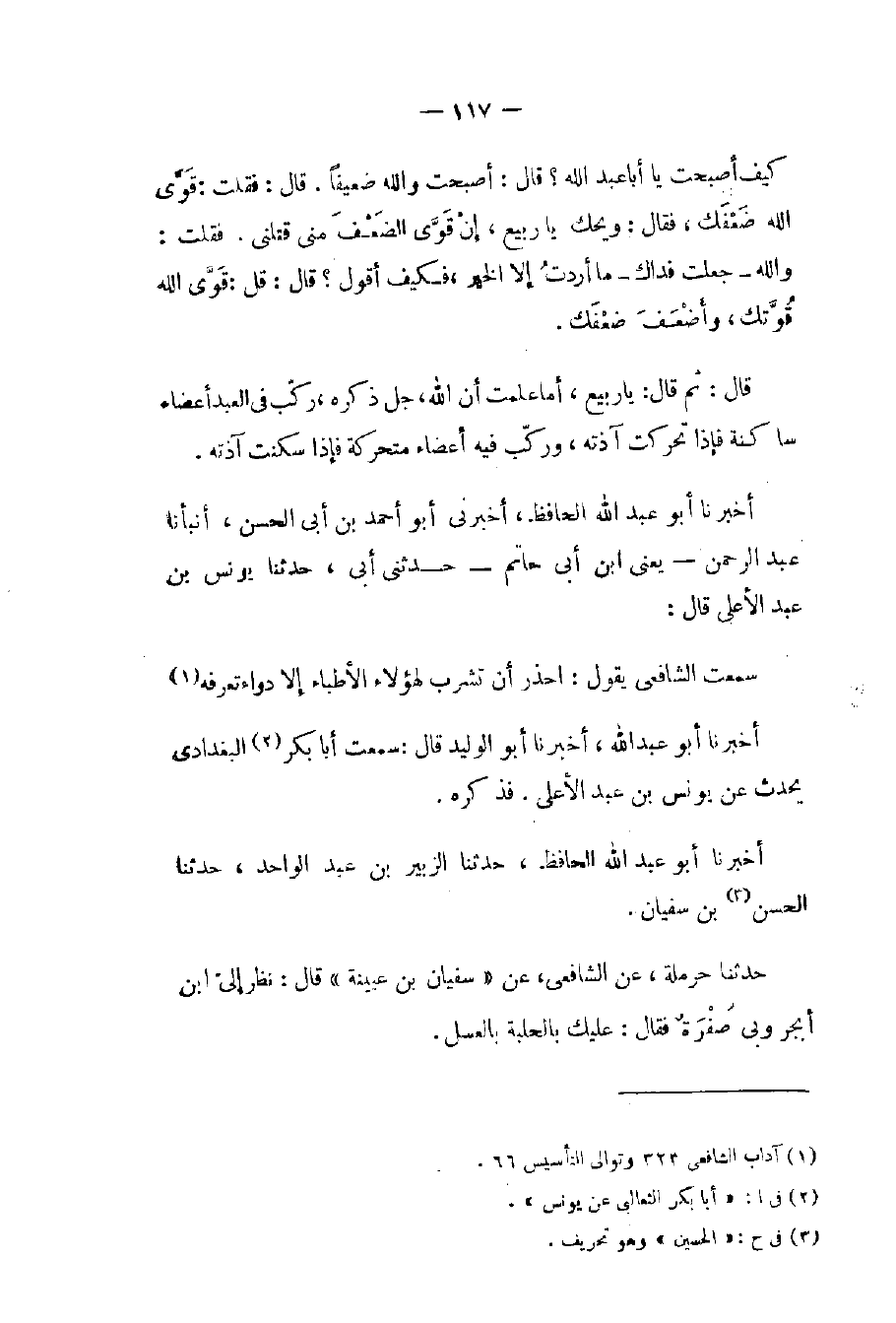 (١) آداب الشافعي ٣٢٣ وتوالي التأسيس ٦٦.