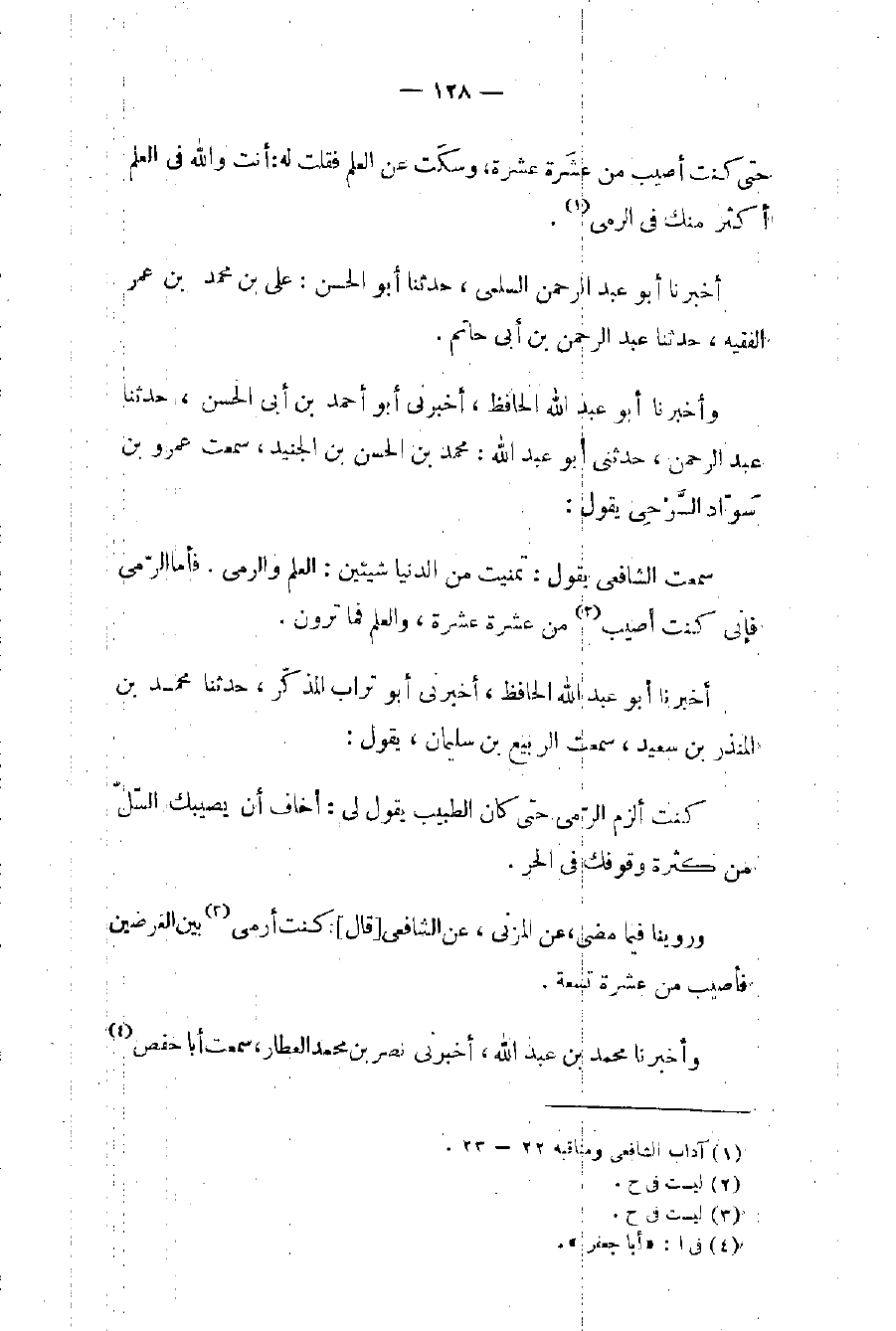 (١) آداب الشافعي ومناقبه ٢٢ - ٢٣.