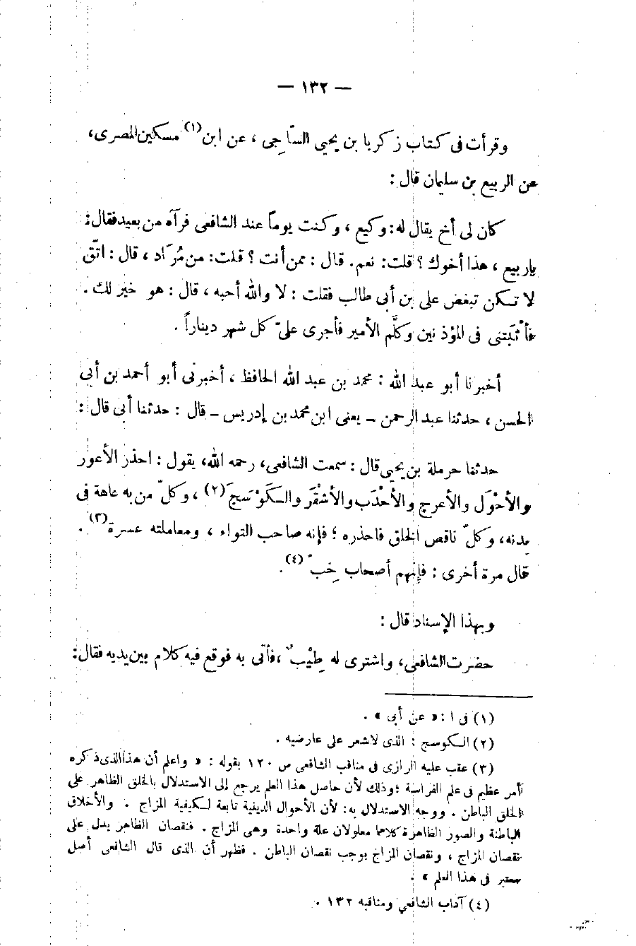 (٤) آداب الشافعي ومناقبه ١٣٢.
