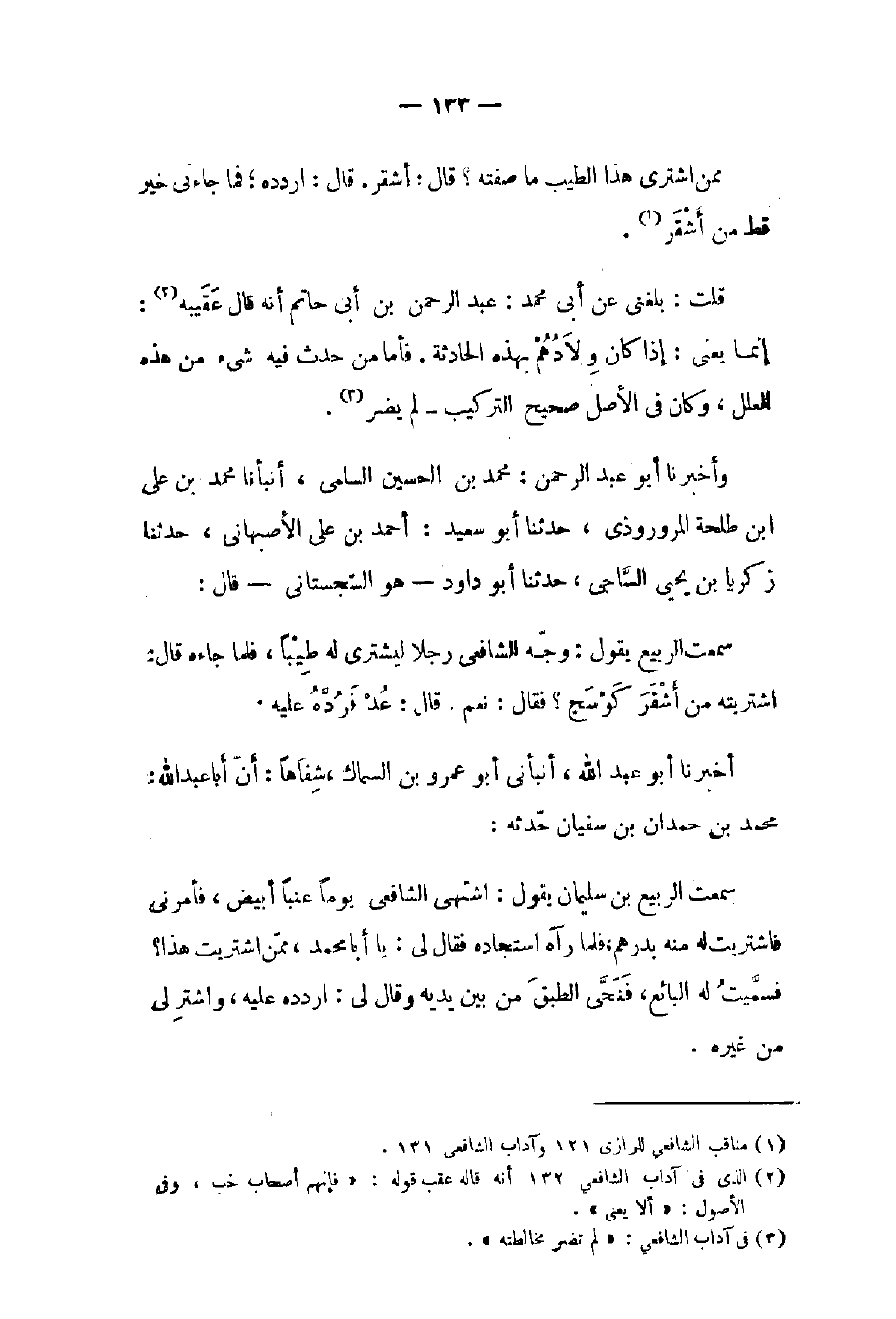 (١) مناقب الشافعي للرازي ١٢١ وآداب الشافعي ١٣١.