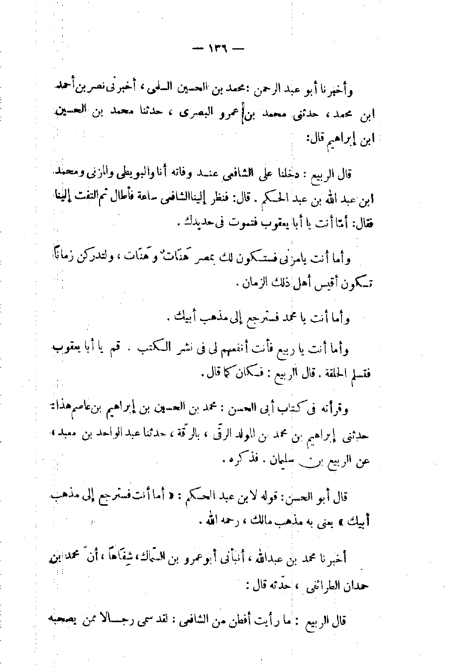 وقرأته في كتاب أبي الحسن: محمد بن الحسين بن إبراهيم بن عاصم هذا: حدثني إبراهيم بن محمد بن المولد الرقّى، بالرقّة، حدثنا عبد الواحد بن معبد، عن الربيع بن سليمان. فذكره.