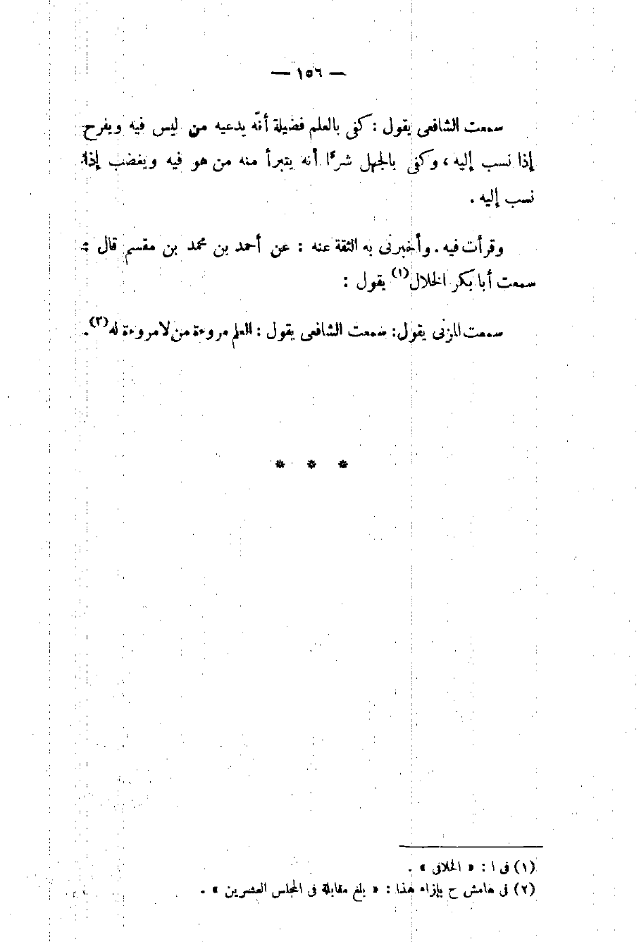 سمعت المزني يقول: سمعت الشافعي يقول: العلم مروءة من لا مروءة له (٢).