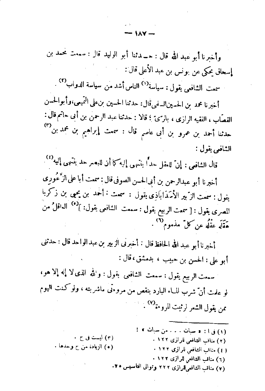 (٦) مناقب الشافعي للرازي ١٢٢.