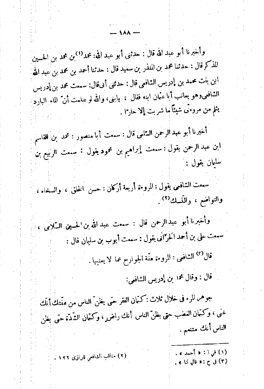 (٢) مناقب الشافعي للرازي ١٢٢.