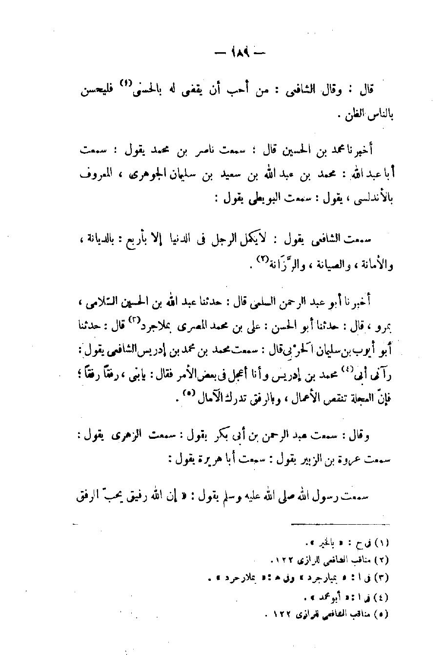 (٥) مناقب الشافعي للرازي ١٢٢.
