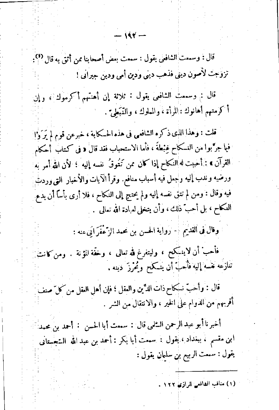 (١) مناقب الشافعي للرازي ١٢٢.