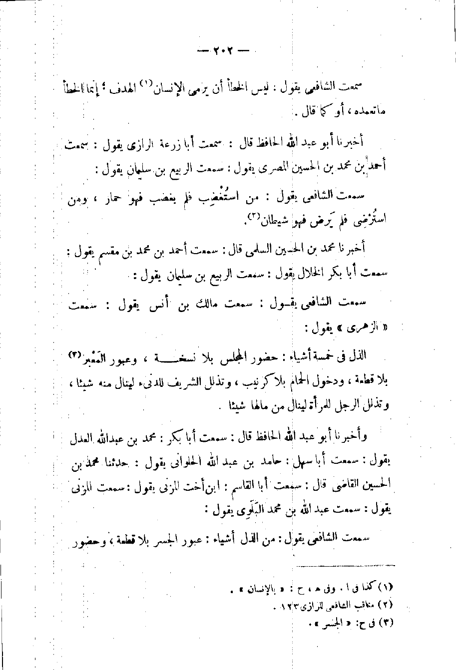 سمعت الشافعي يقول: سمعت مالك بن أنس يقول: سمعت «الزهري» يقول: