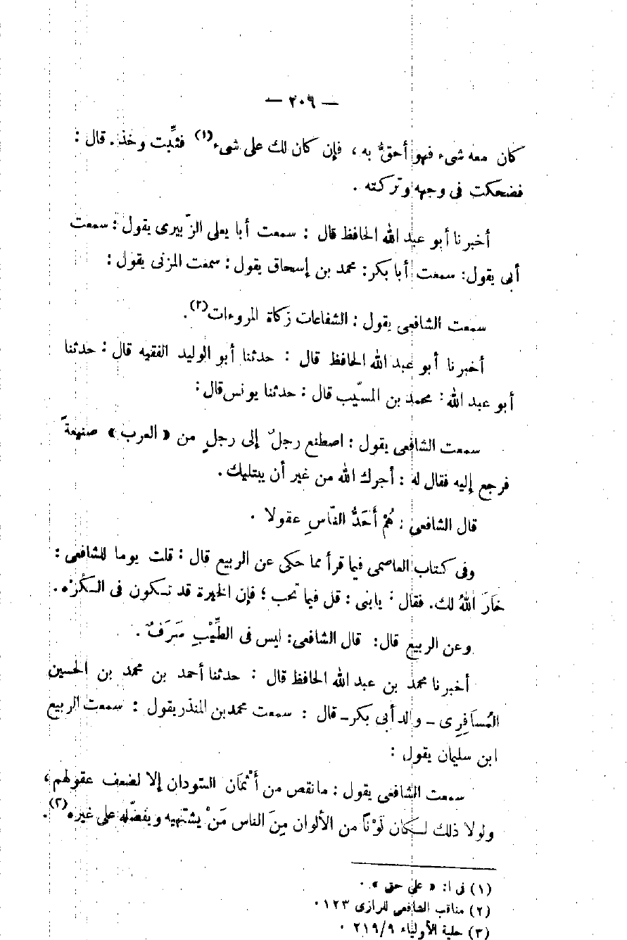 (٢) مناقب الشافعي للرازي ١٢٣.