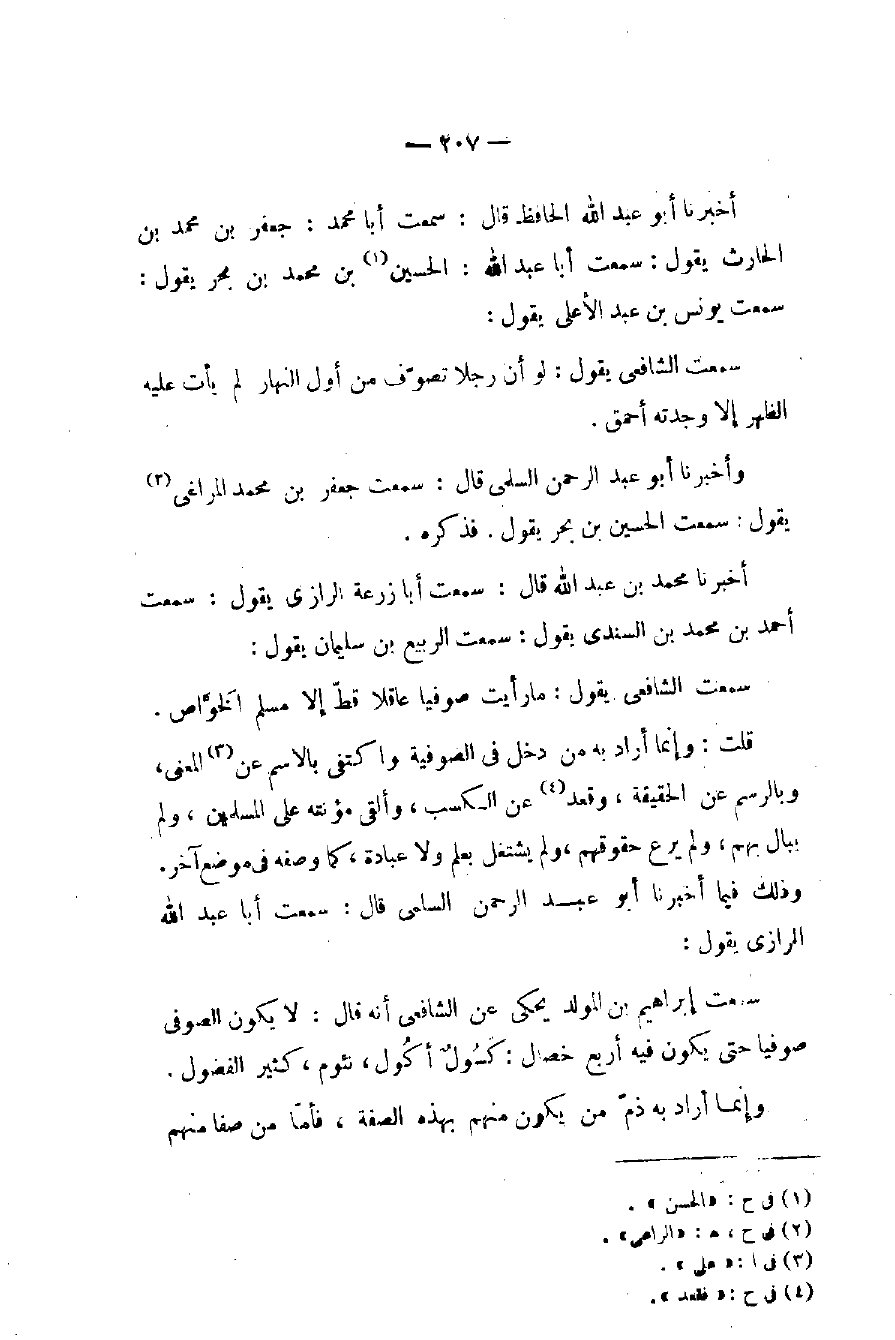وأخبرنا أبو عبد الرحمن السلمي قال: سمعت جعفر بن محمد المراغي (٢) يقول: سمعت الحسين بن بحر يقول. فذكره.