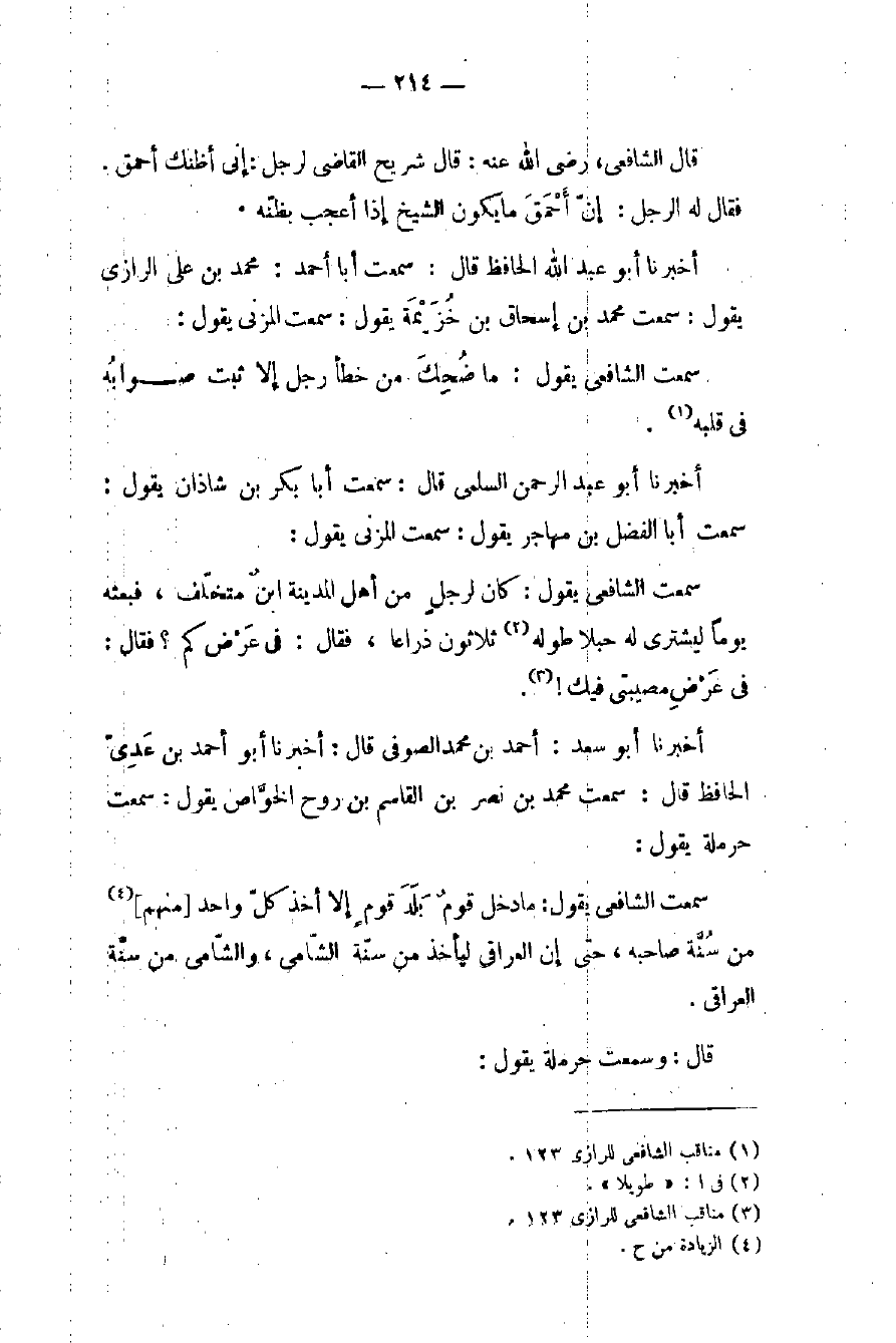 (٣) مناقب الشافعي للرازي ١٢٣.