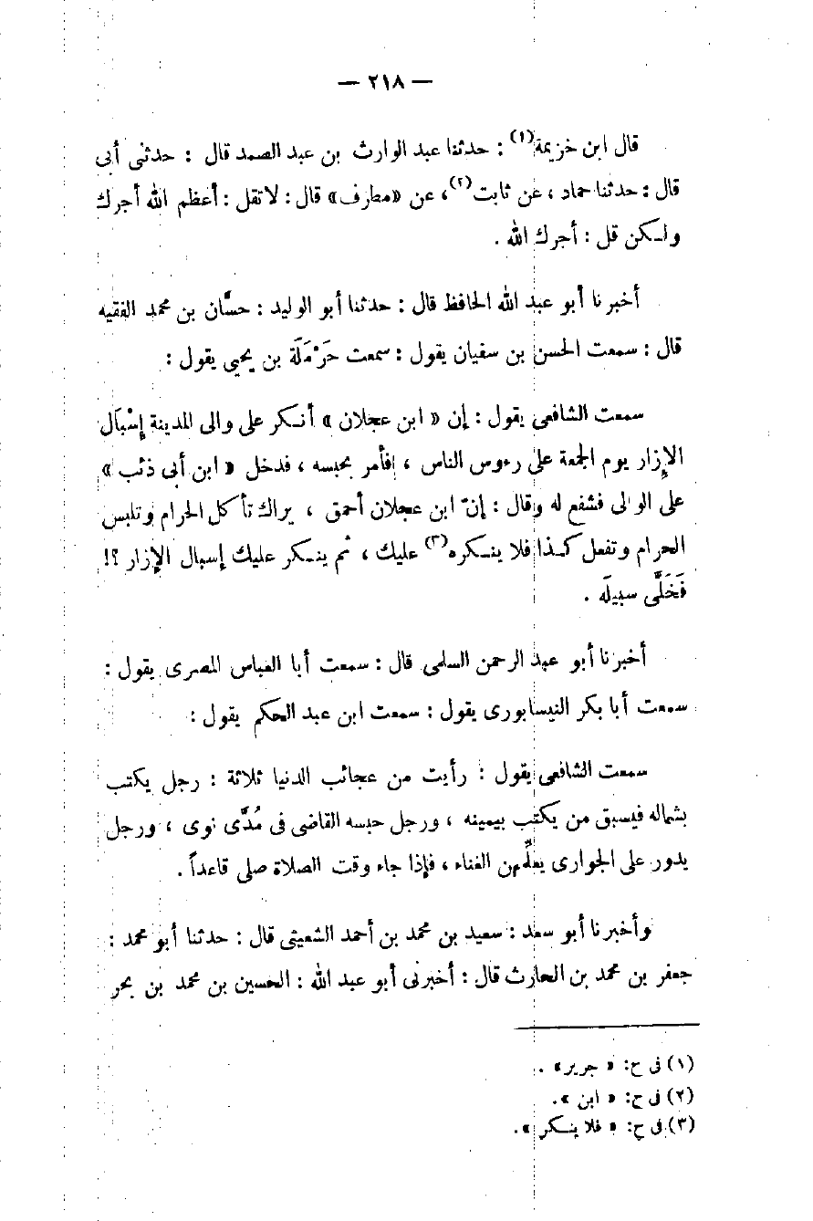 أخبرنا أبو عبد الله الحافظ قال: حدثنا أبو الوليد: حسَّان بن محمد الفقيه قال: سمعت الحسن بن سفيان يقول: سمعت حَرْمَلَة بن يحيى يقول:
