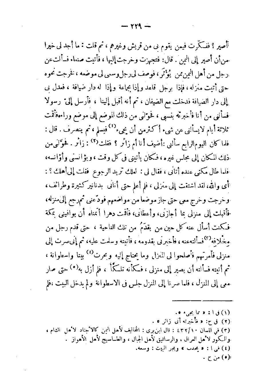 أصير؟ ففكّرت فيمن يقوم بي من قريش وغيرهم، ثم قلت: ما أجد لي خيرا من أن أصير إلى اليمن. قال: فتجهزت وخرجت إليها، فأتيت صنعاء فسألت عن رجل من أهل اليمن ممن يُؤْثَر، فوصف لي رجل وسمى لي موضعه، فخرجت نحوه حتى أتيت منزله، فإذا برجل قاعد وإذا بجماعة وإذا له دار ضيافة، فعدل بي إلى دار الضيافة فدخلت مع الضيفان، ثم أنه أقبل إلينا، فأرسل إليّ رسولا فسألني من أنا فأخبرته بنسبي، فحوّلني من ذلك الموضع إلى موضع وراءه فأقمت ثلاثة أيام لا يسألني عن شيء أكثر من أن يجيء (١) فيسلم، ثم ينصرف. قال: فلما كان اليوم الرابع سألني: أضيف أنا أم زائر؟ فقلت (٢): زائر. فحوَّلني من ذلك المكان إلى مجلس وغيره، فكان يأتيني في كل وقت، ويؤانسنى وأؤانسه، فلما طال مكثي عنده أتاني، فقال لي: لعلك تريد الرجوع فقلت إلى أهلك؟: أي والله، لقد اشتقت إلى منزلي، فلم أعلم حتى أتاني بدنانير كثيرة وطرائف، وخرجت وخرج معي حتى جاز موضعا من مواضعهم فودّعني ثم رجع إلى منزله، فأقبلت إلى منزلي بما أجازني، وأعطاني، فأقمت دهرا أتمناه أن يوافيني بمكة فكنت أسأل عنه كل حين من يقدَمُ من تلك الناحية، حتى قدم رجل من مِخْلافِه (٣) فسألته عنه، فأخبرني بقدومه، فأتيته وسلمت عليه، ثم إني صرت إلى منزلي فأمرتهم فأصلحوا لي المنزل وما يحتاج إليه وبحرت (٤) بيتا واسطوانة، ثم أتيته فسألته أن يصير إلى منزلي، فكأنه تلكَّأَ، فلم أزل به (٥) حتى صار معي إلى المنزل، فلما صرنا إلى المنزل جلس في الاسطوانة ولم يدخل البيت، فلم