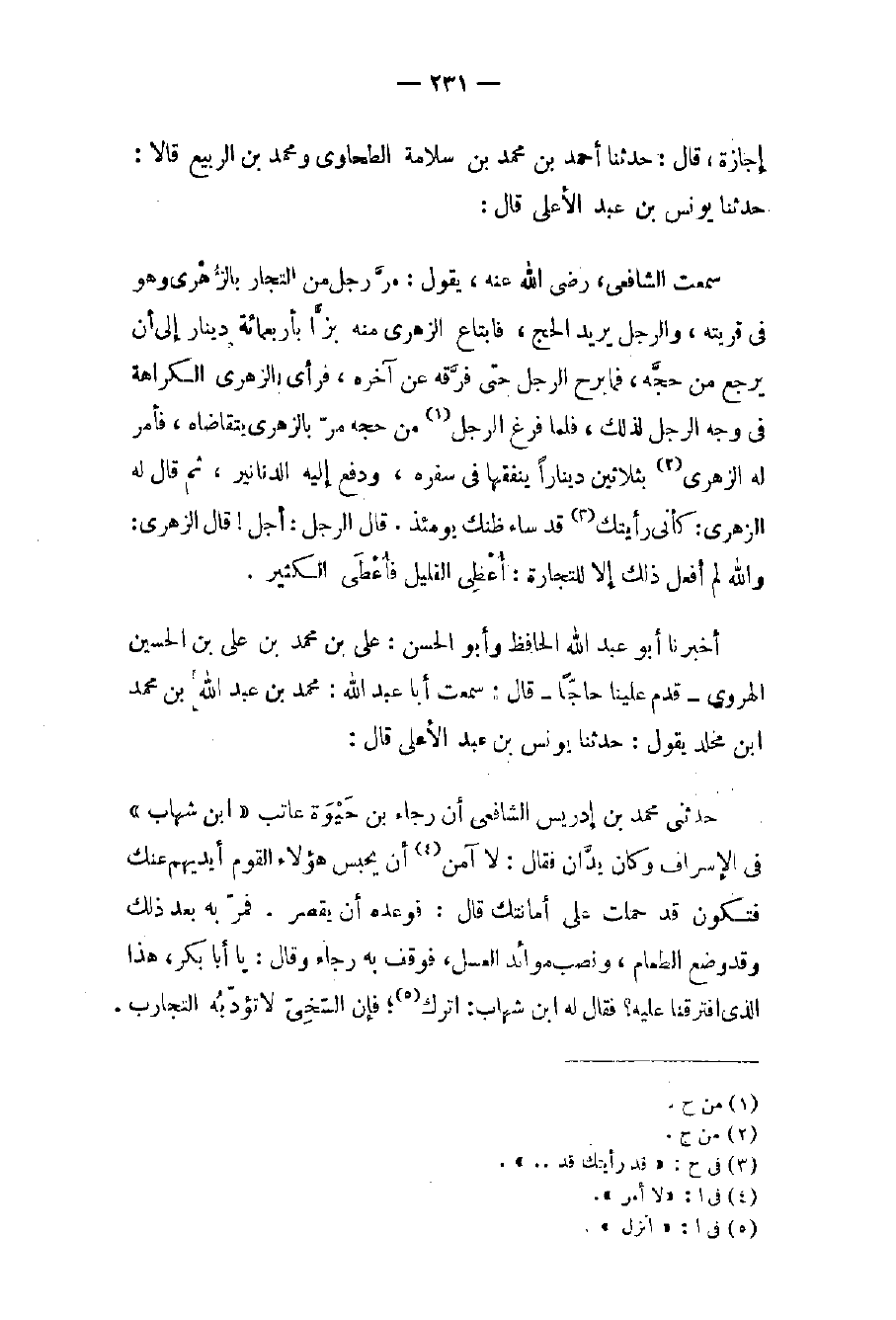 إجازة، قال: حدثنا أحمد بن سلامة الطحاوي ومحمد بن الربيع قالا: حدثنا يونس بن عبد الأعلى قال: