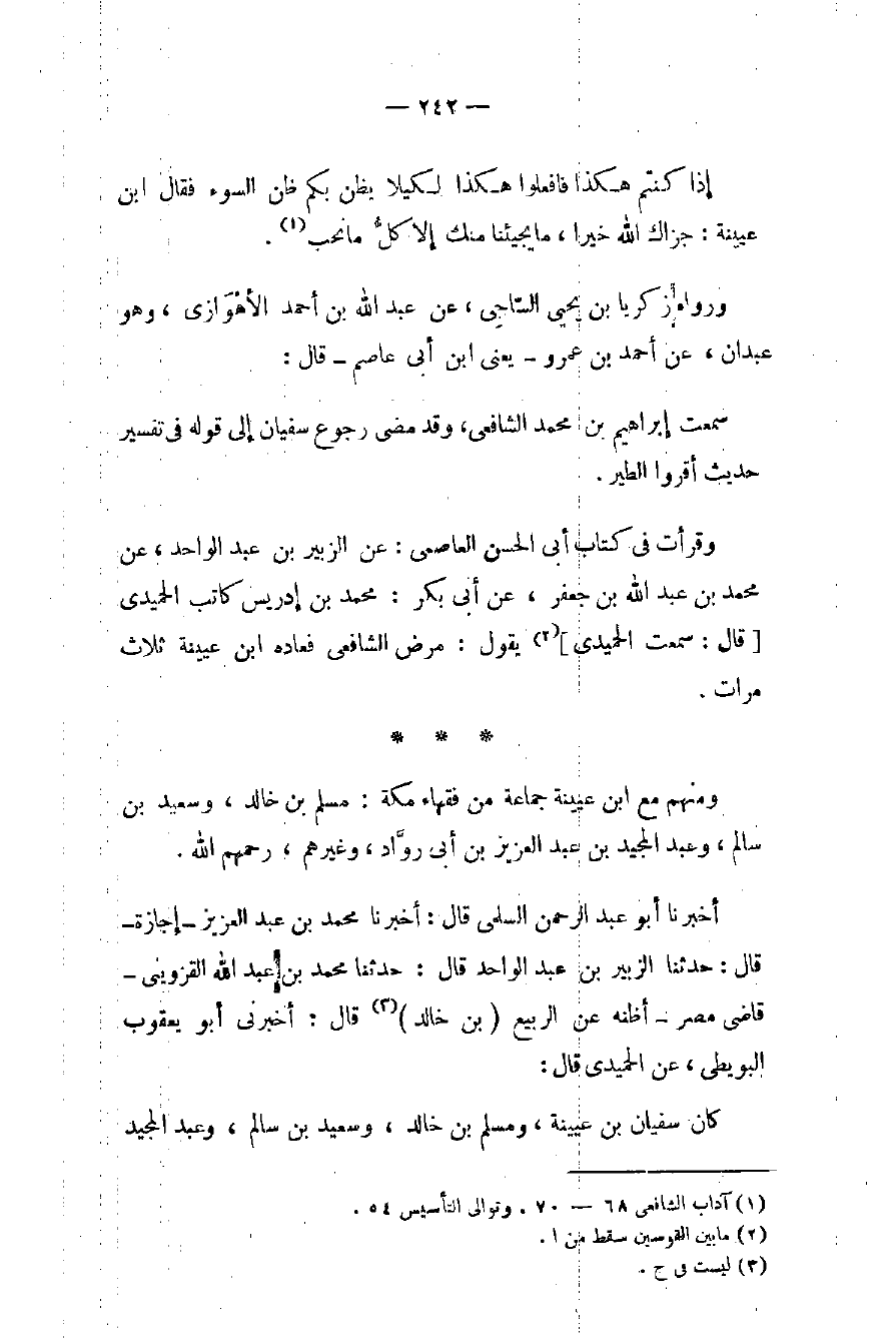 (١) آداب الشافعي ٦٨ - ٧٠. وتوالي التأسيس ٥٤.