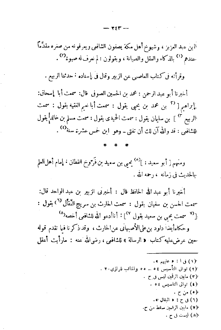 أخبرنا أبو عبد الله الحافظ قال: أخبرني الزبير بن بعد الواحد قال: سمعت الحسن بن سفيان يقول: سمعت الحارث بن سريج النَّقَّال (٦) يقول: [(٥ سمعت يحيى بن سعيد يقول (٧)]: أنا أدعو الله للشافعي أخصه (٨)