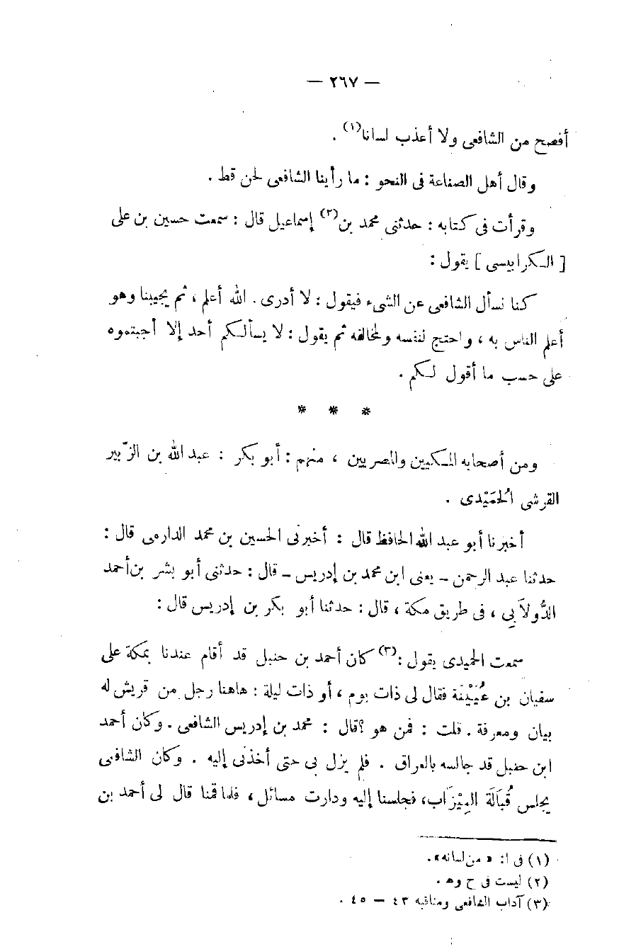 (٣) آداب الشافعي ومناقبه ٤٣ - ٤٥.