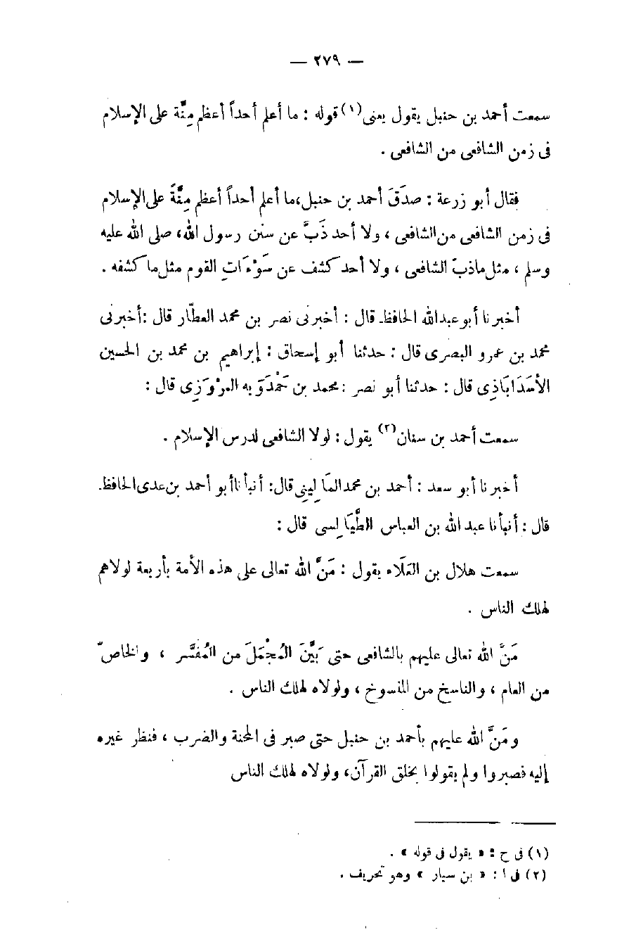 سمعت أحمد بن حنبل يقول يعني (١) قوله: ما أعلم أحداَ أعظم مِنَّة على الإسلام في زمن الشافعي من الشافعي.