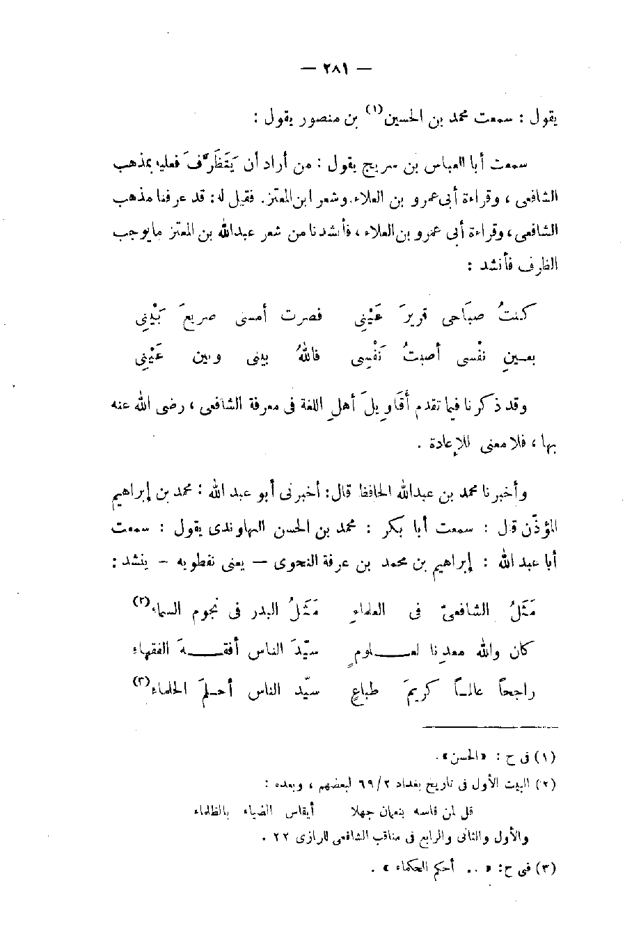 مَثَلُ الشافعيّ في العلماءِ ... مَثَلُ البدر في نجوم السماء (٢)