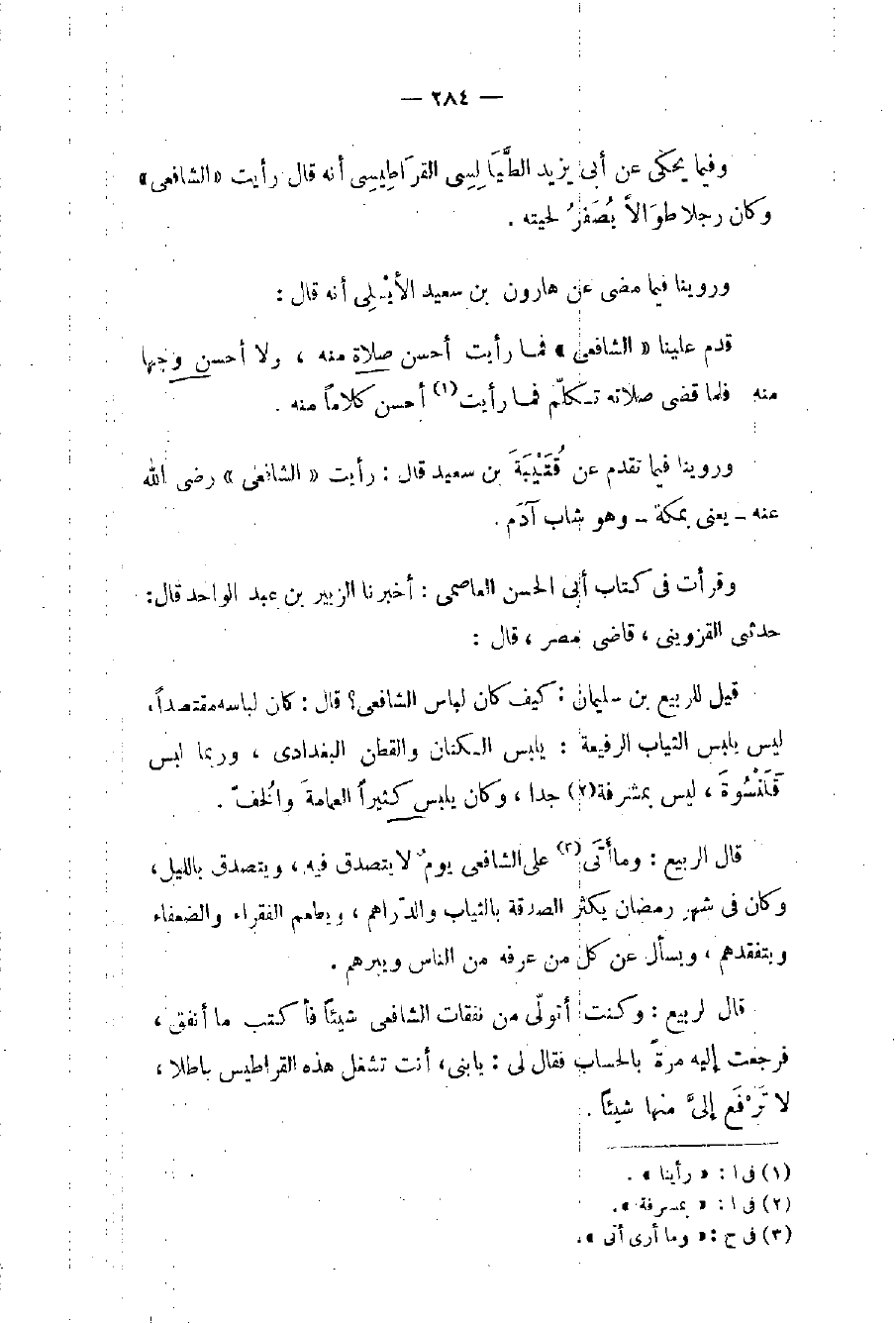 وفيما يحكى عن أبي يزيد الطَّيَالِسِي القرَاطِيسِي أنه قال رأيت «الشافعي» وكان رجلا طوَالاً يُصَفرُ لحيته.
