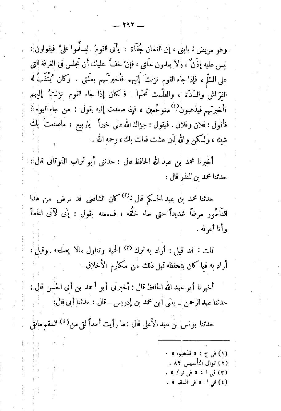 حدثنا يونس بن عبد الأعلى قال: ما رأيت أحداً لقى من (٤) السقم ما لقى