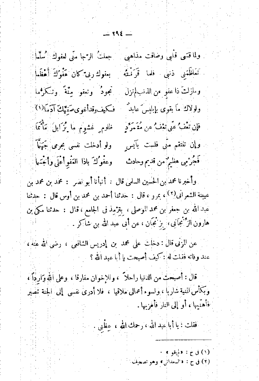 عن المزني قال: دخلت على محمد بن إدريس الشافعي، رضي الله عنه، عند وفاته فقلت له: كيف أصبحت يا أبا عبد الله؟