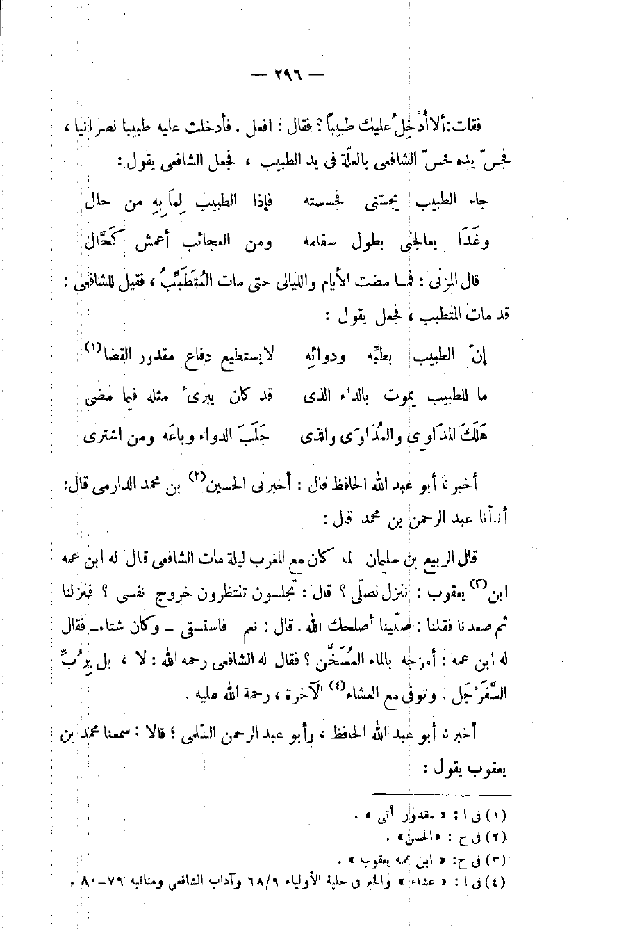 (٤) في ا: «عشاء» والخبر في حلية الأولياء ٩/ ٦٨ وآداب الشافعي ومناقبه ٧٩ - ٨٠.