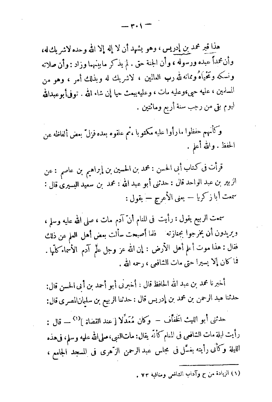 (١) الزيادة من ح وآداب الشافعي ومناقبه ٧٣.