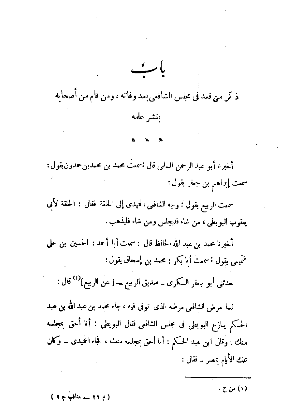 ذكر من قعد في مجلس الشافعي بعد وفاته، ومن قام من أصحابه بنشر علمه